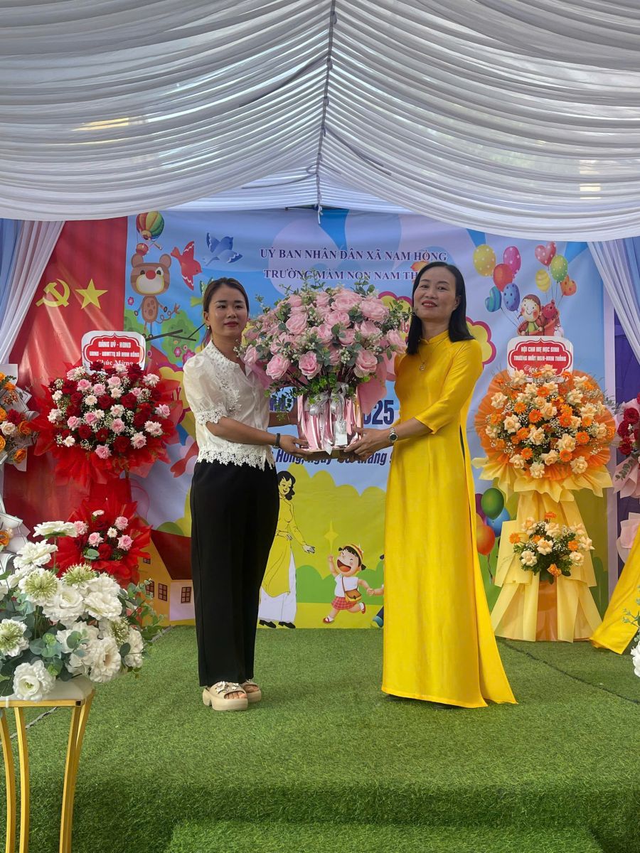 Phụ huynh học sinh lên tặng hoa chúc mừng
